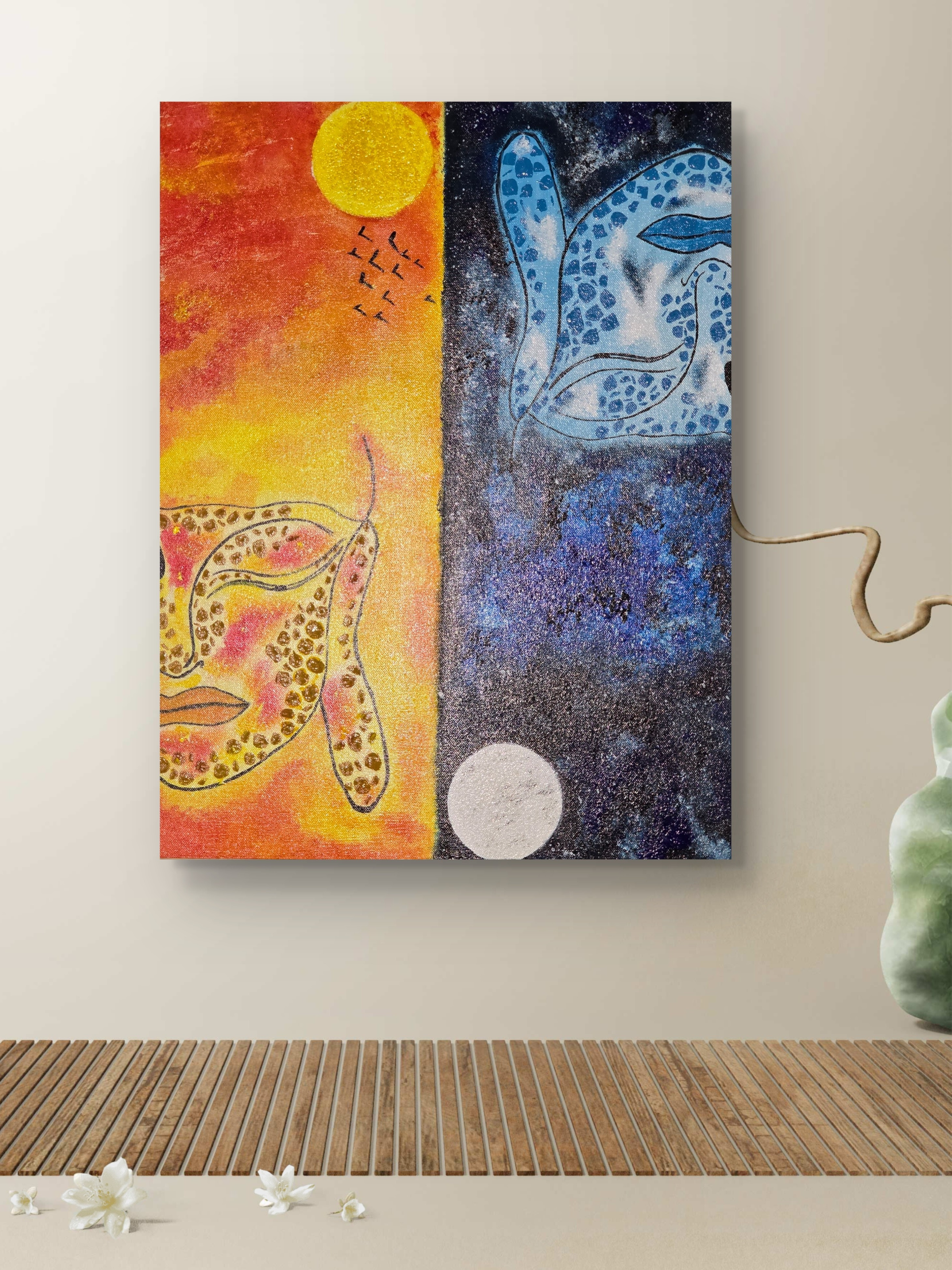 This is ultimately a painting about integration and celebration—honoring both the fire of life and the peace of transcendence as equally beautiful aspects of our complete spiritual being.